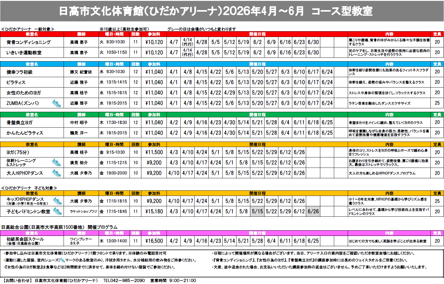 ひだかアリーナ2026年度 第1期コース型教室のご案内